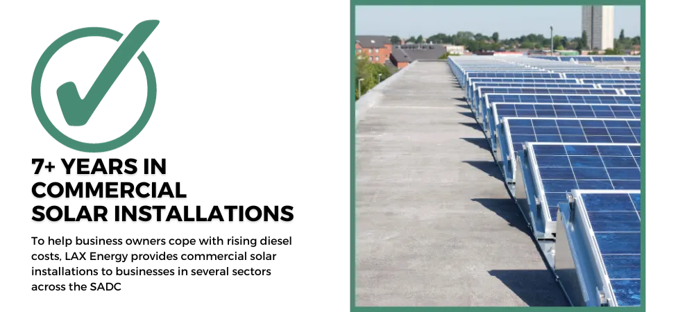 To help business owners cope with rising diesel costs, LAX Energy provides commercial solar installations to businesses in several sectors across the SADC